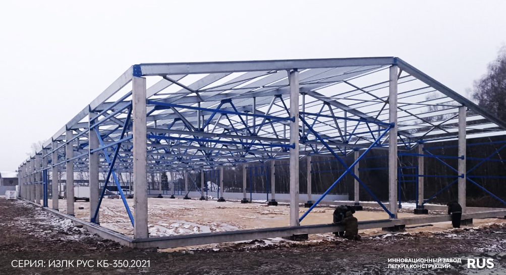 Так как никаких «мокрых» бетонных работ на участке не производится, нет необходимости заливать монолитную плиту или ленточный фундамент, начинать строительство ангара или склада можно даже зимой